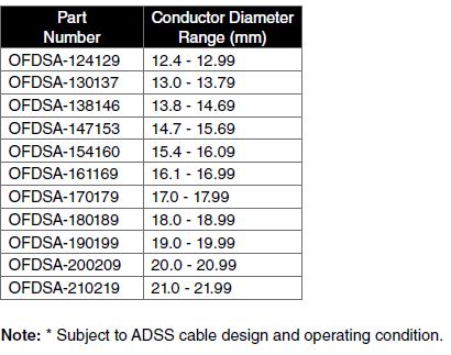 “Medium Span” Series are recommended for ADSS spans up to 350m. Subject to ADSS cable design and operating conditions.