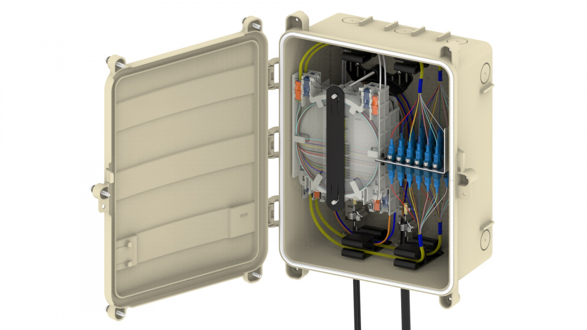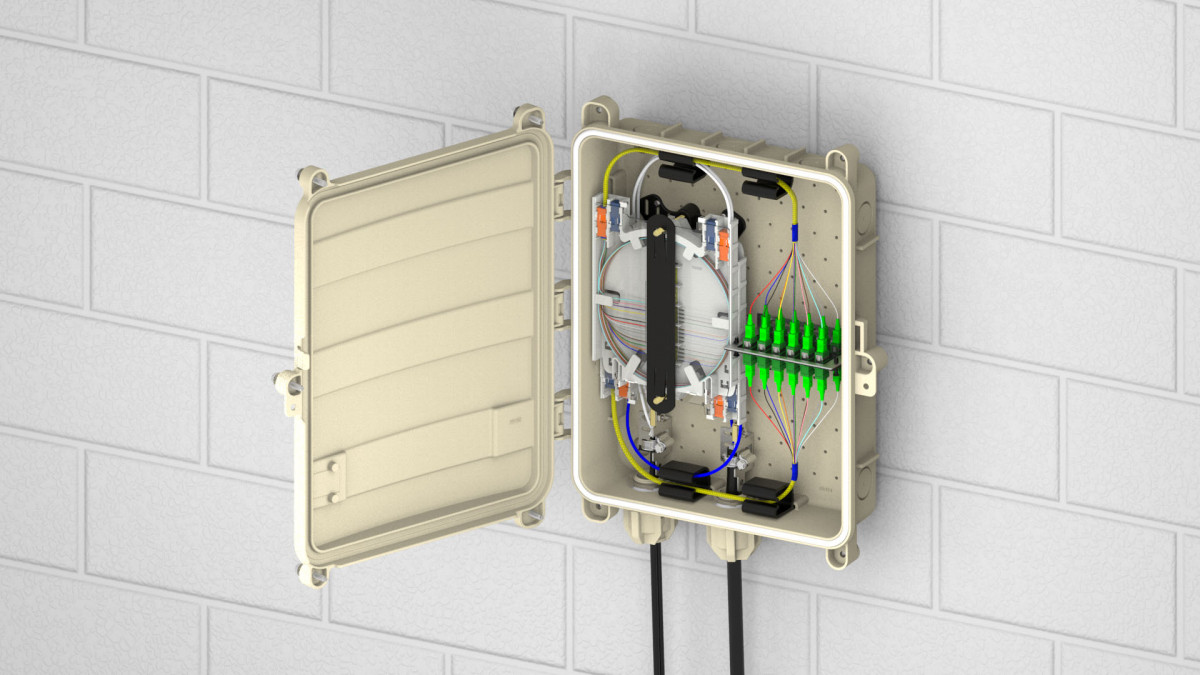 The COYOTE MPC (Multi-Purpose Closure) is constructed of durable, UV-stabilized, flame-retardant polymer to permit interior or exterior applications. Eight cable entrance ports around the exterior accept an easy-to-use grommet system and standard commercially available fittings. The closure’s interior can be configured to address slack storage, splicing, cross-connect, hardened adapter applications, or any combination. Pre-terminated configurations are also available to minimize the amount of labor required during installation.