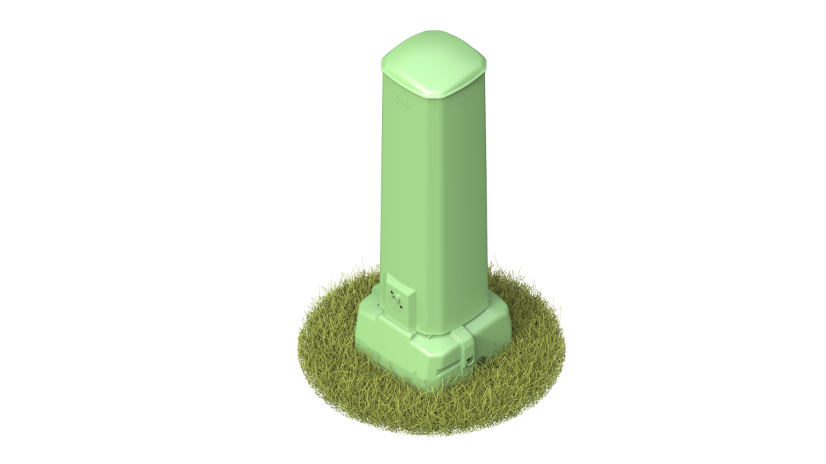 Split base design for easy installation around pre-installed duct/cables and replacement of existing pedestals