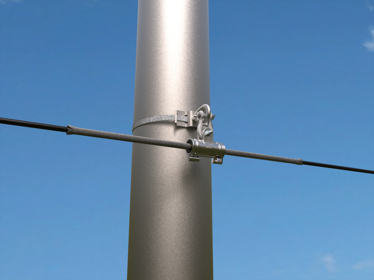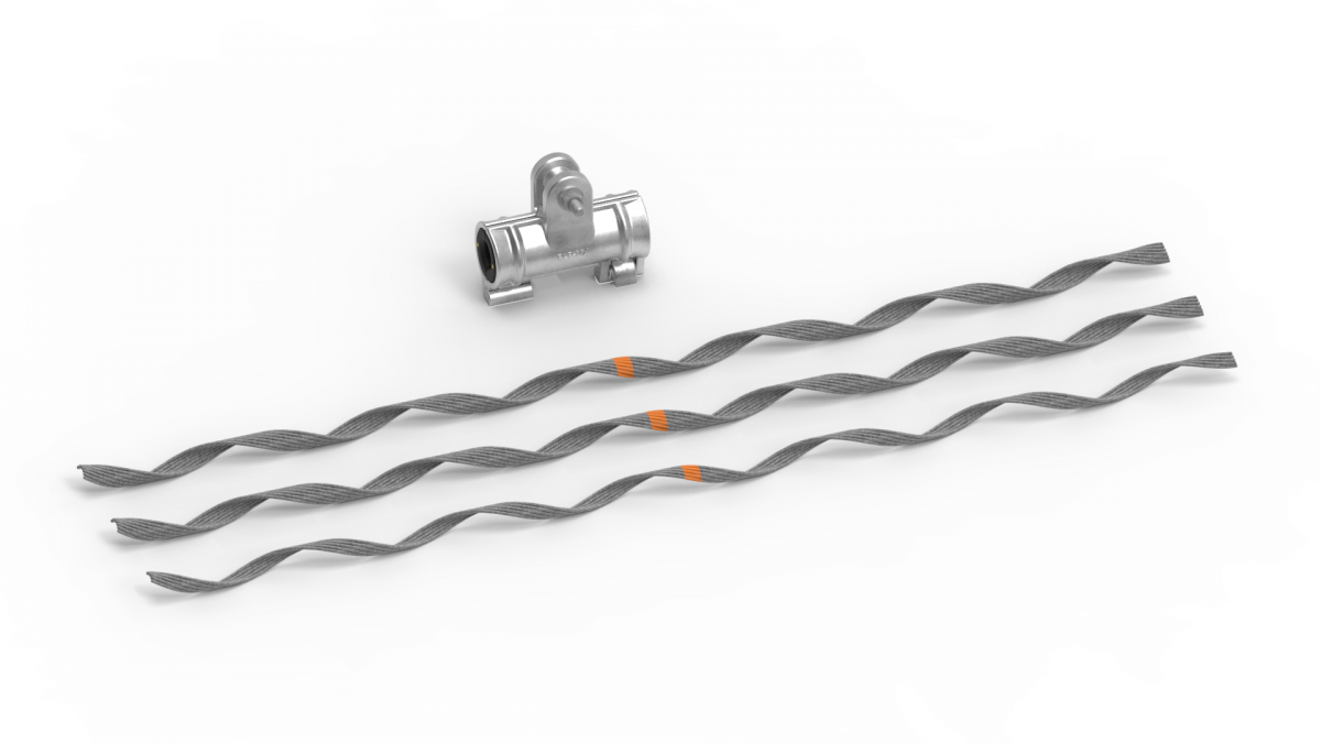 The FIBERLIGN Aluminum Suspension (FASN) is designed to gently, but firmly, suspend ADSS cable. It is intended for tangent support installations on lines that have short to medium spans and can be used in low- to high-voltage environments. Structural Reinforcing Rods (SRR) and conductive taped inserts are deployed in high-voltage environments and long span applications, as required for transmission portions of the cable network.