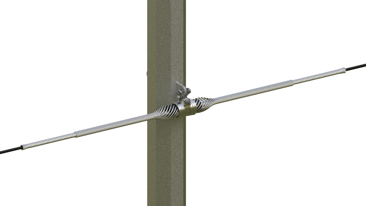 The FIBERLIGN Dielectric Suspension system uses a combination of Structural Reinforcing Rods (SRR), outer rods, a boltless housing, and resilient cable inserts to reduce compression clamping and bending stresses on the cable and fibers. Negative effects of wind-induced cable motion, such as aeolian vibration, galloping, and wind sway, are also minimized. The double rod layer offers critical protection against tearing of the plastic cable jacket during unbalanced longitudinal loading of the cable while providing substantial holding strength.