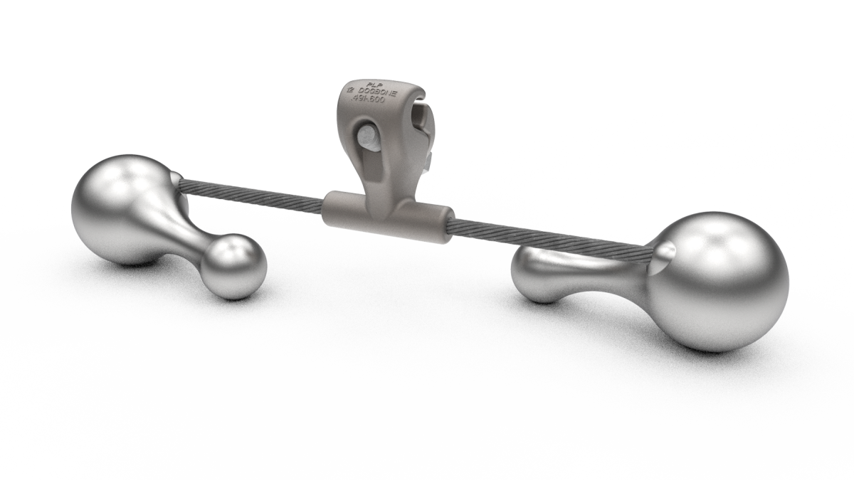 The DOGBONE Vibration Damper for Tower Down Guys is designed to eliminate guy line fatigue damage and line maintenance costs by effectively diminishing aeolian vibration. The messenger cable and unique "dog bone" shape of the masses are designed to achieve optimal energy dissipation for minimal clamp movement.
