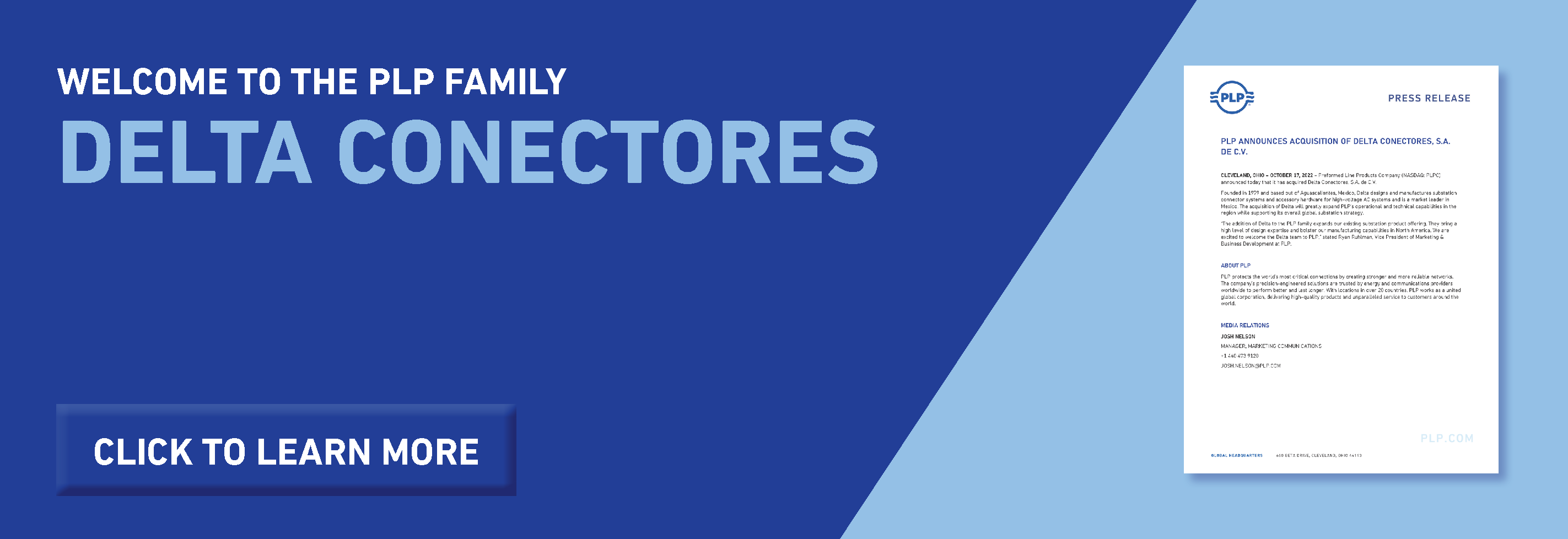 PLP ANNOUNCES ACQUISITION OF DELTA CONECTORES, S.A. DE C.V.